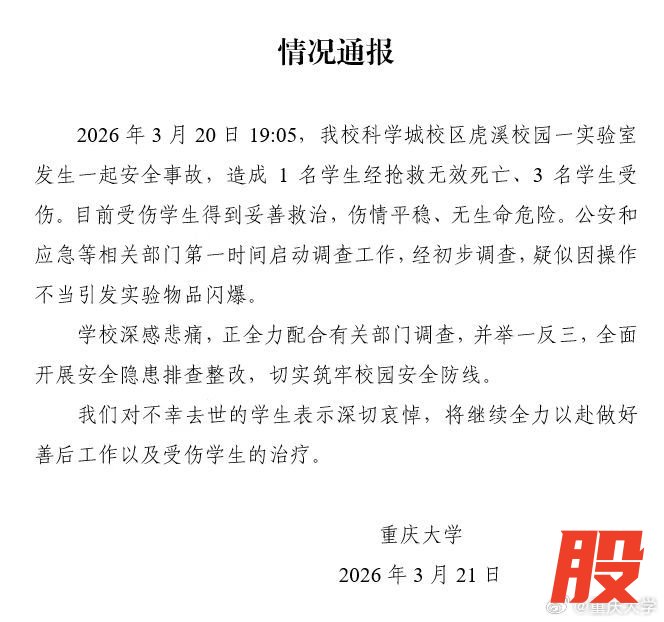 重庆大学通报1死3伤事故:疑似因操作不当引发实验物品闪爆重庆大学通报1死3伤事故:疑似因操作不当引发实验物品闪爆