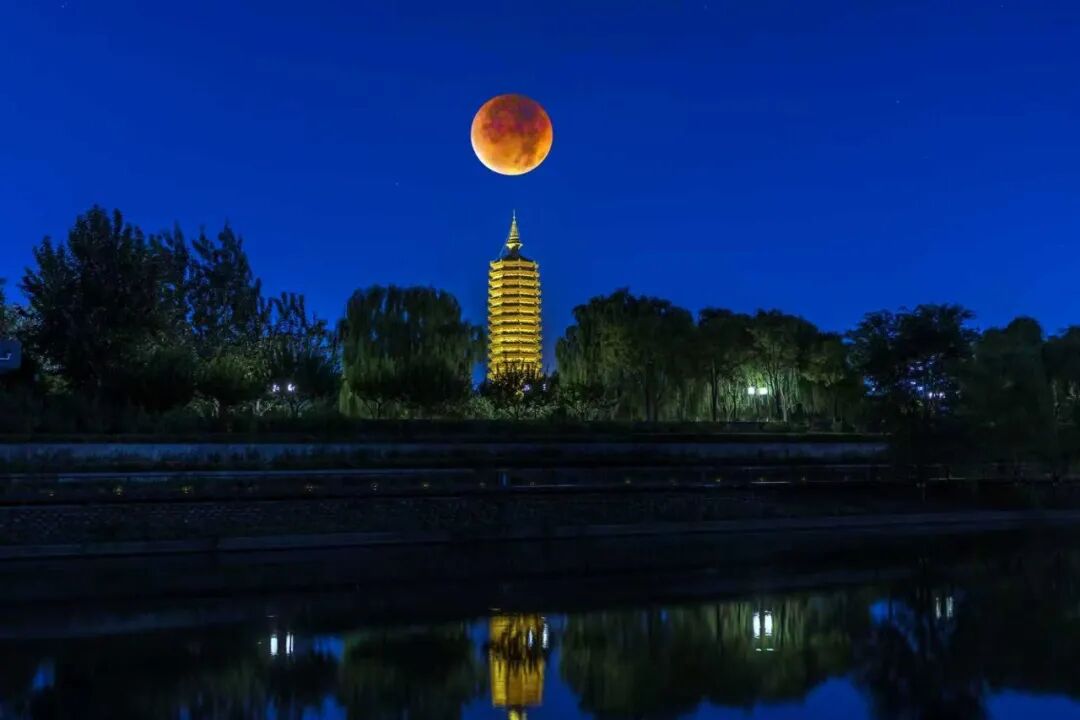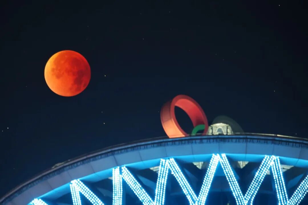 红月亮与奥林匹克塔“合照”。 白继开摄