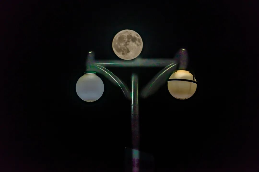 月与灯(多重曝光)。 张淑贵摄